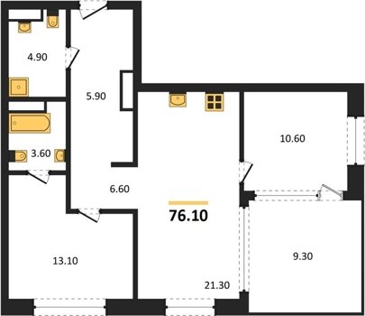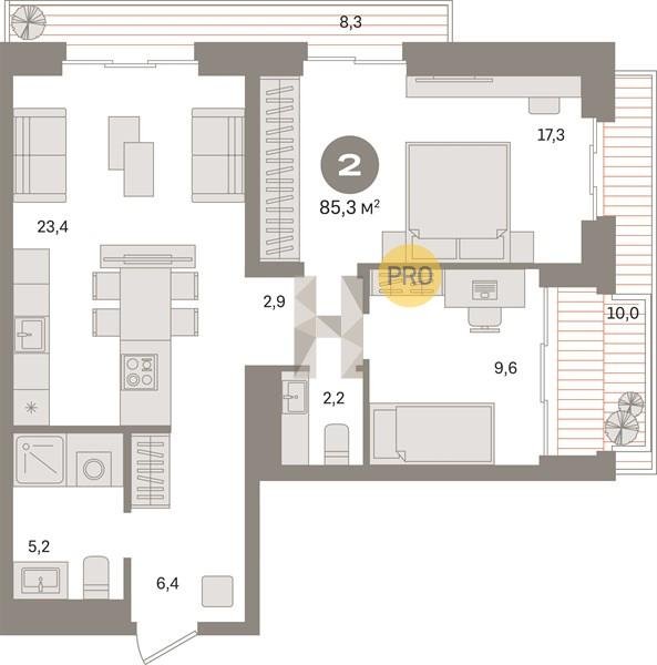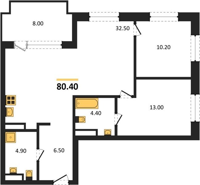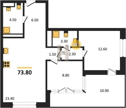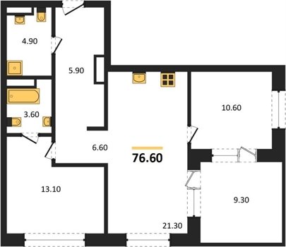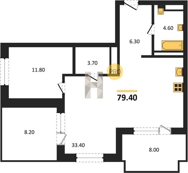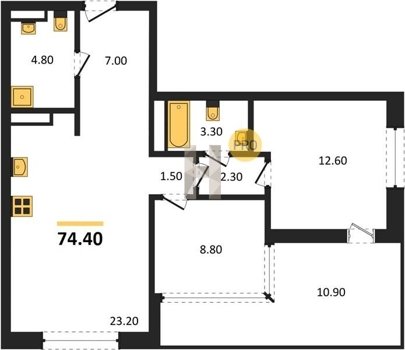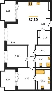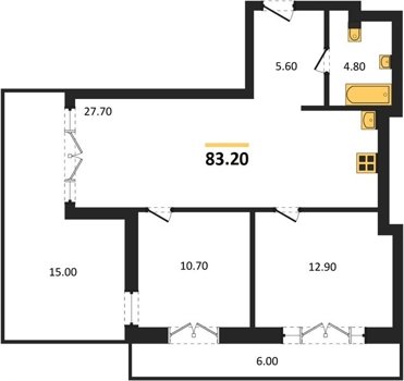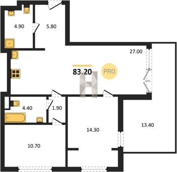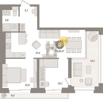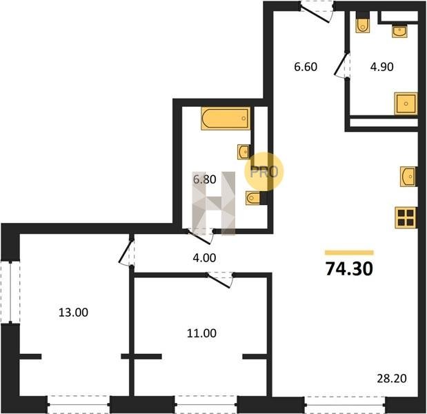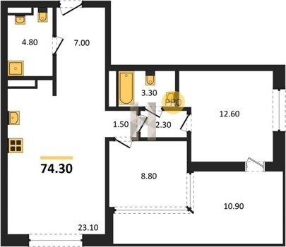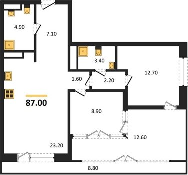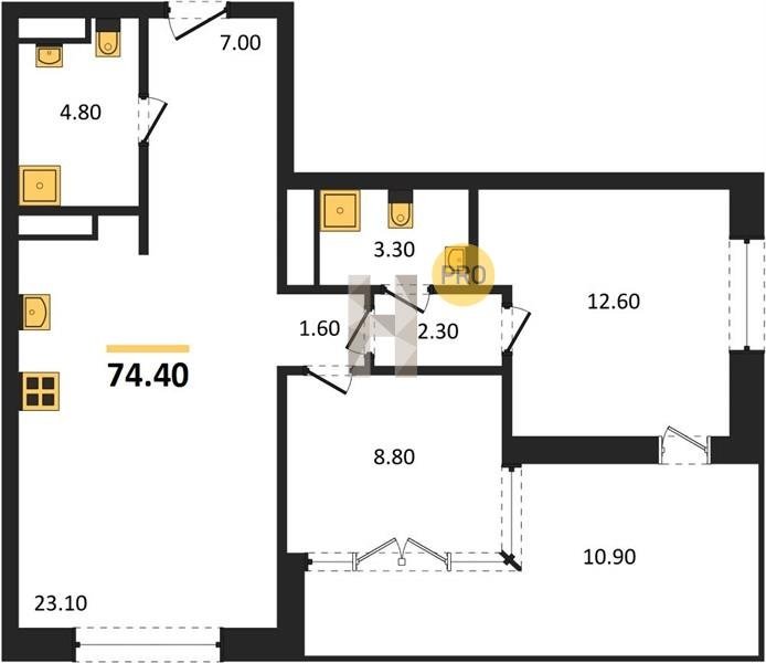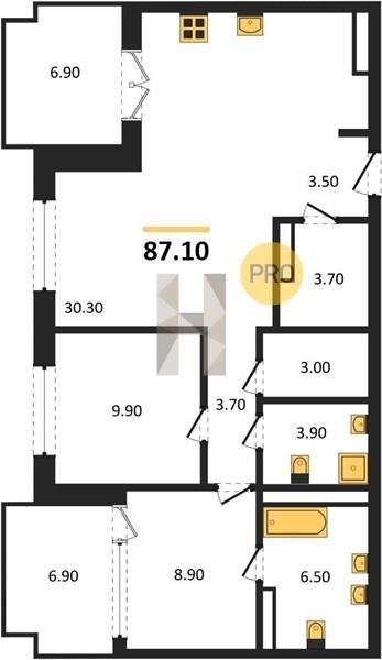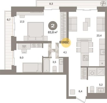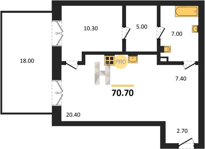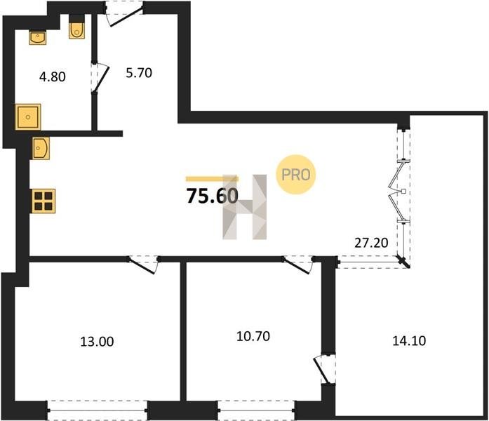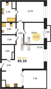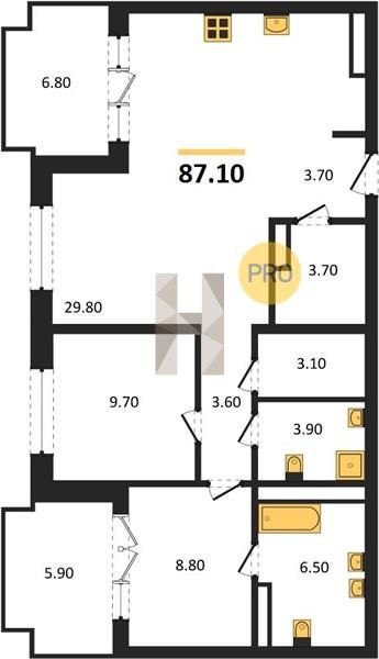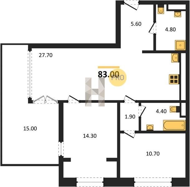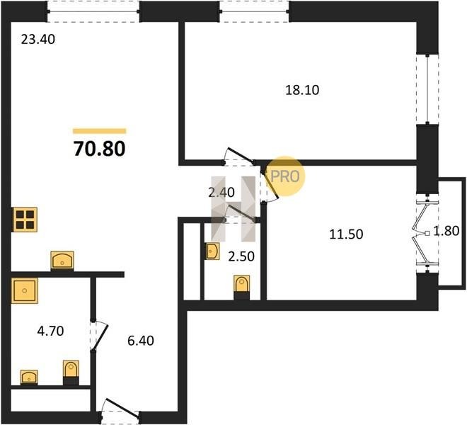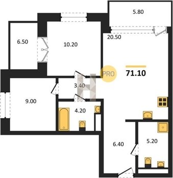 Площадь от 70.8 м2