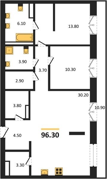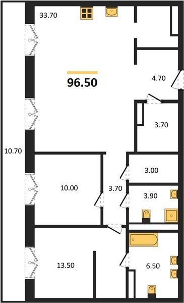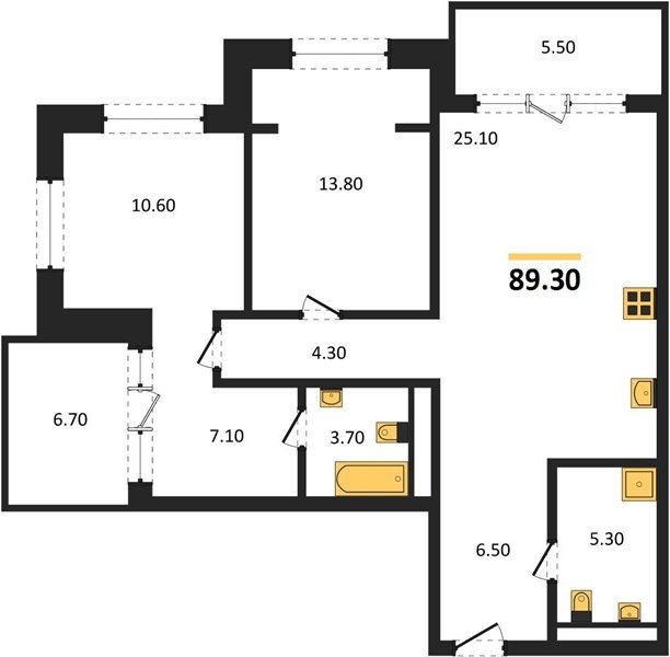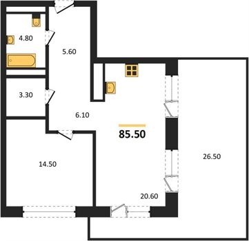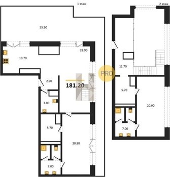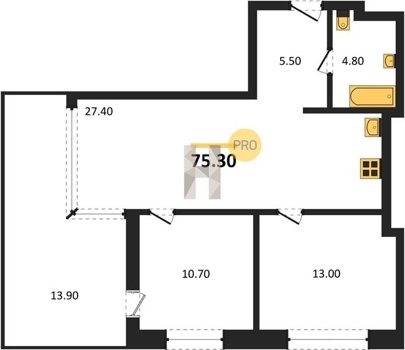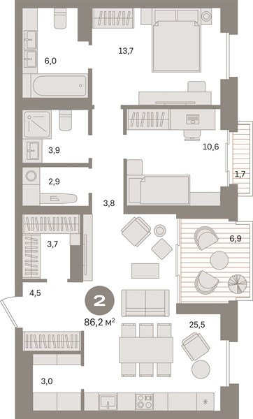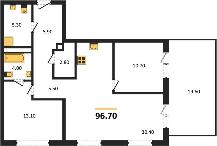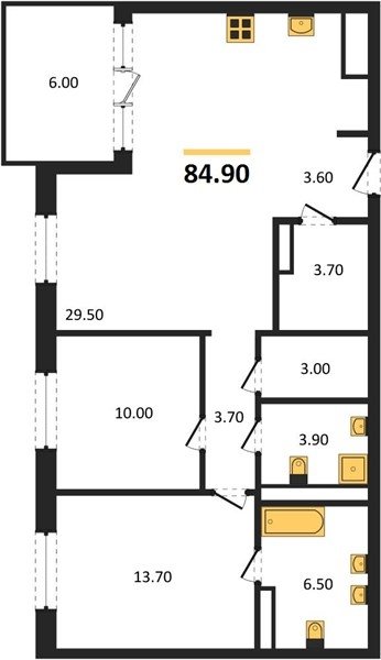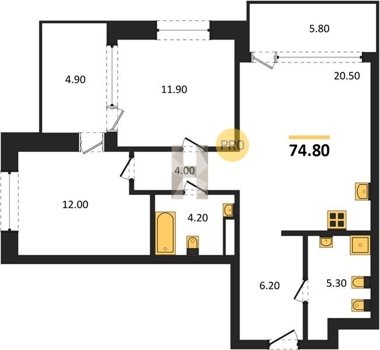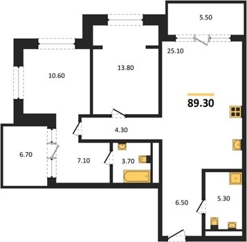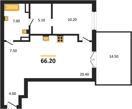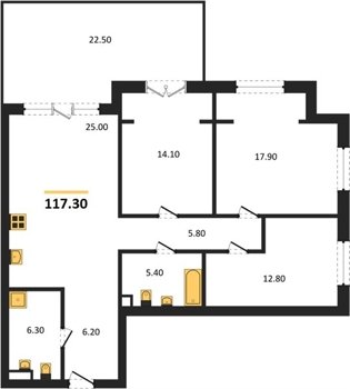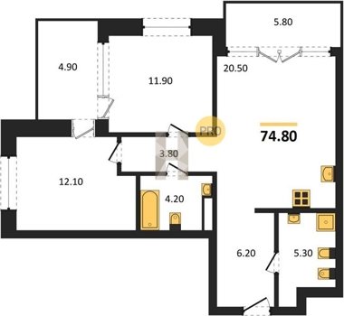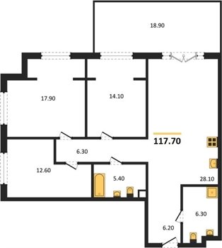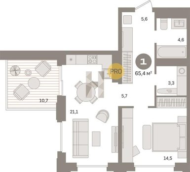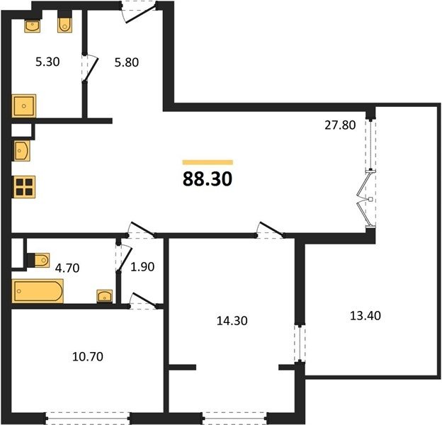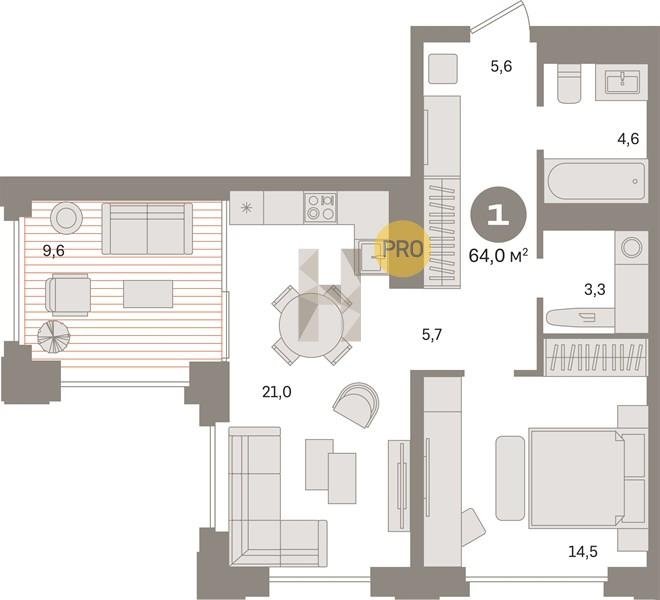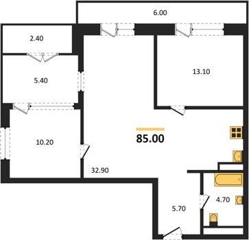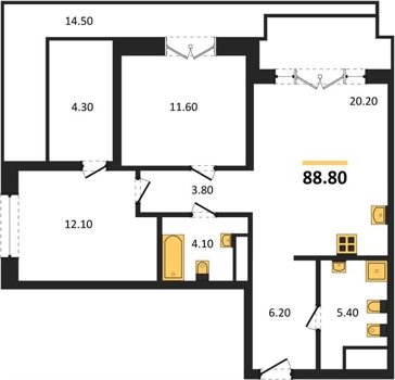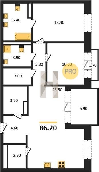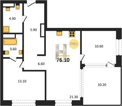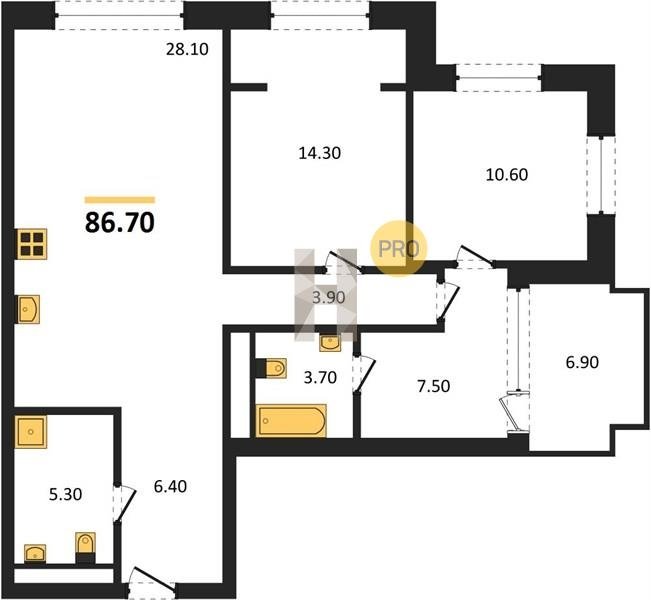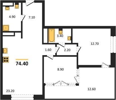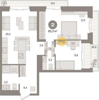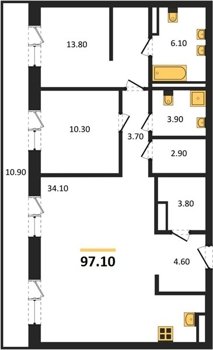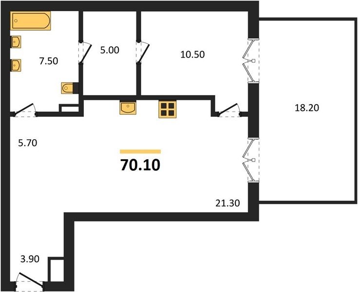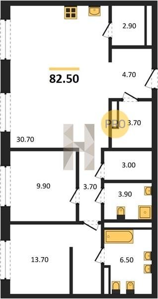Площадь от 70.8 м2