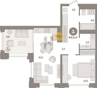 Площадь от 35.4 м2