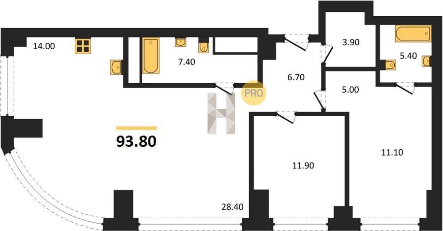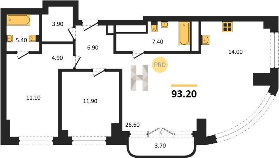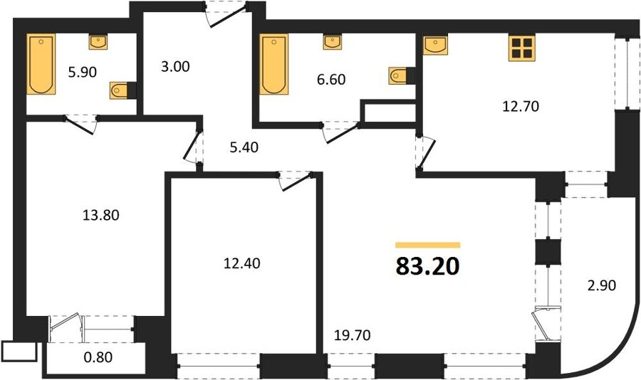 Площадь от 83.2 м2