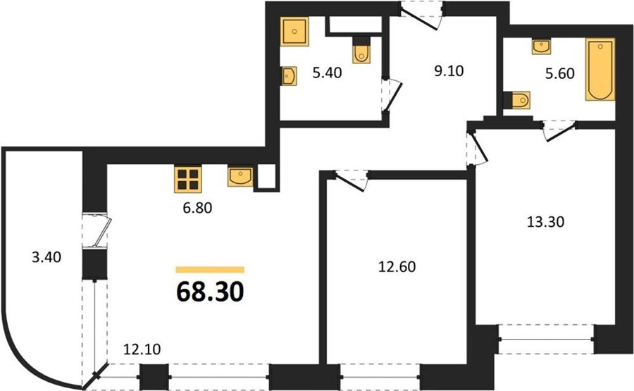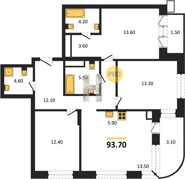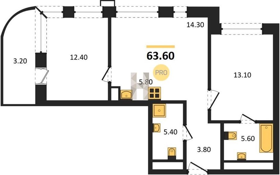 Площадь от 63.6 м2