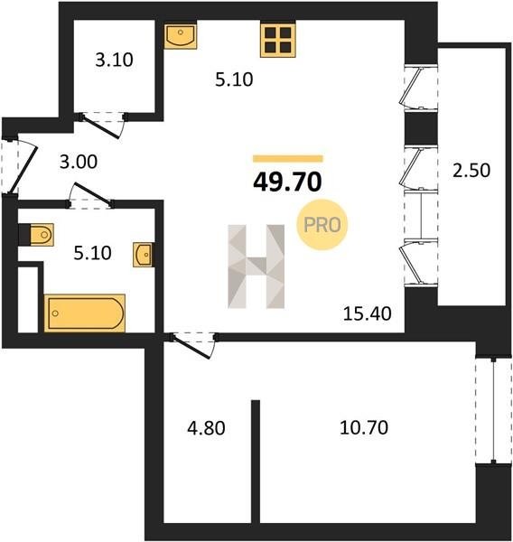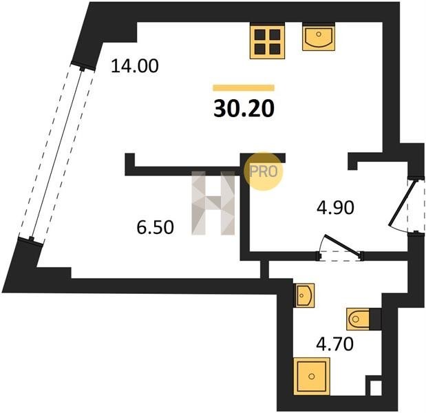 Площадь от 29.7 м2