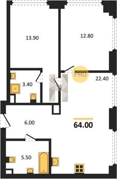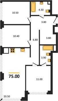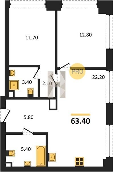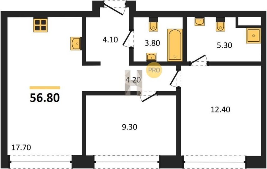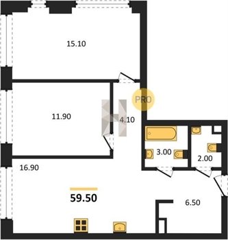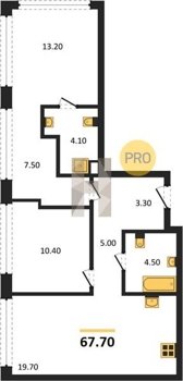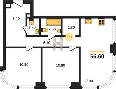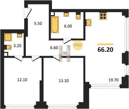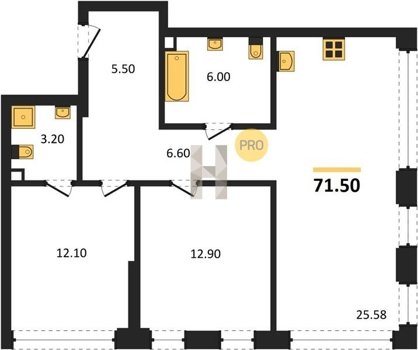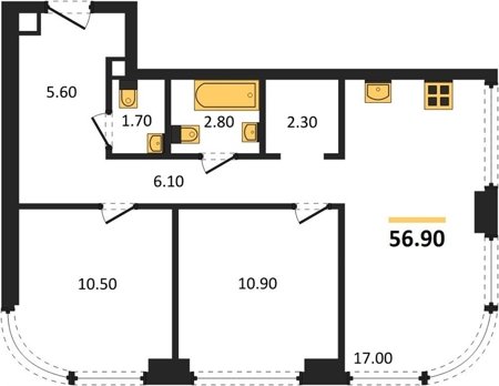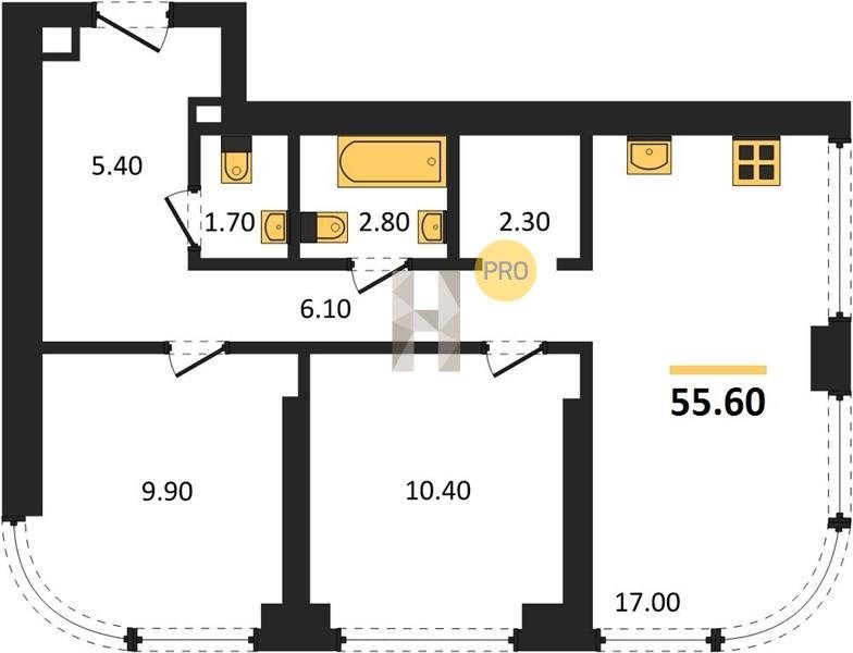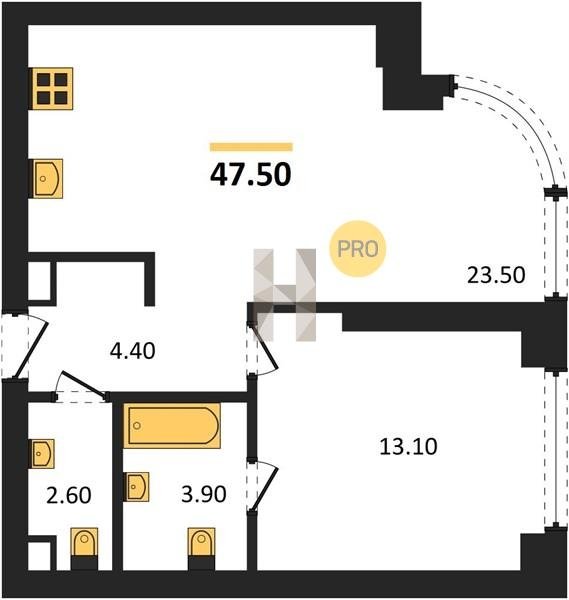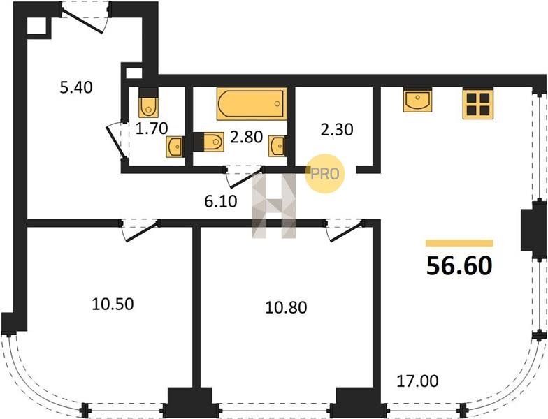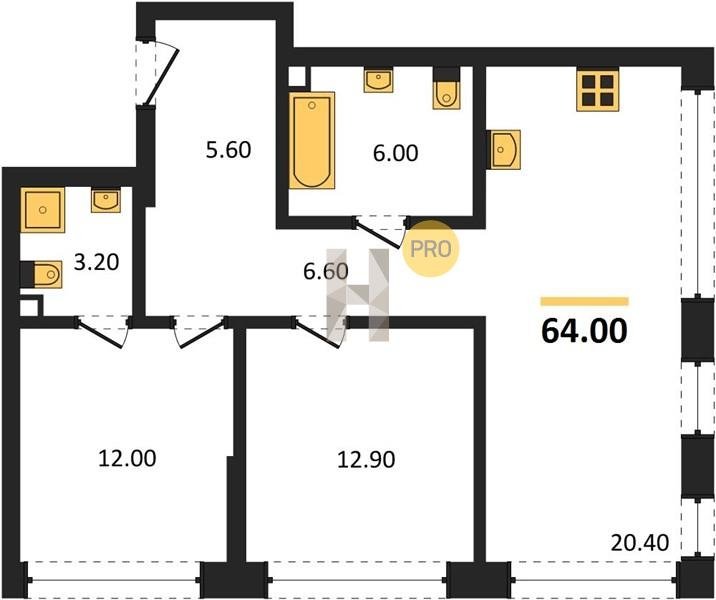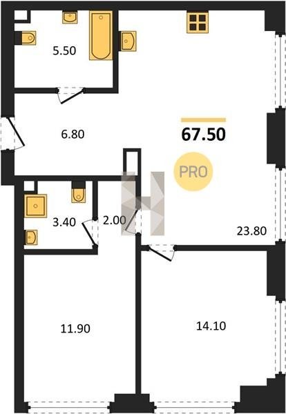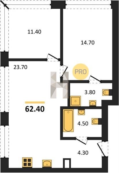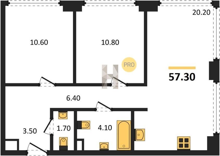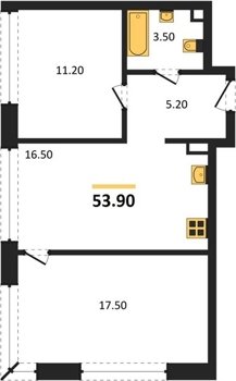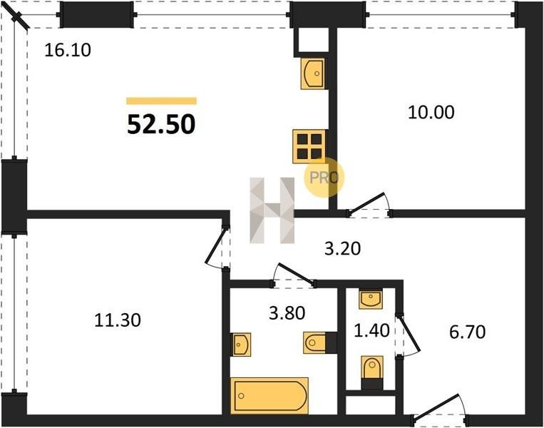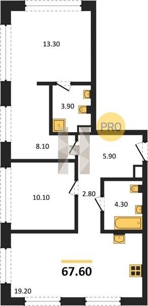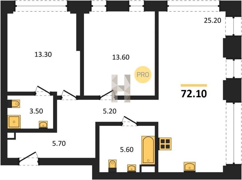 Площадь от 52.5 м2