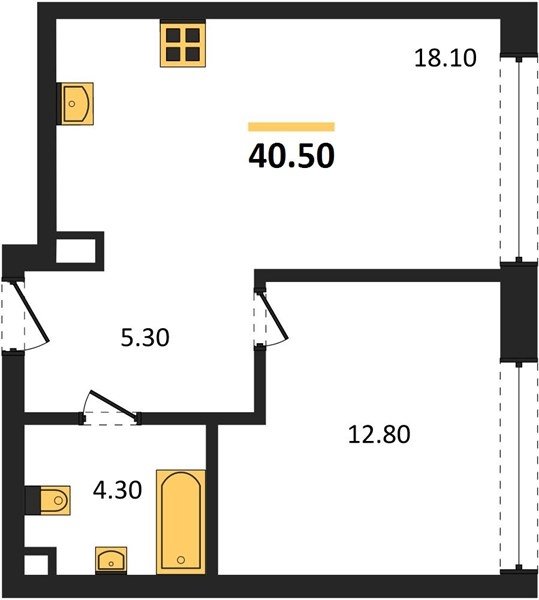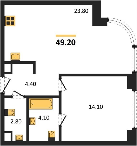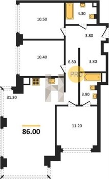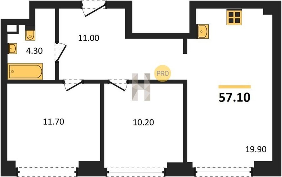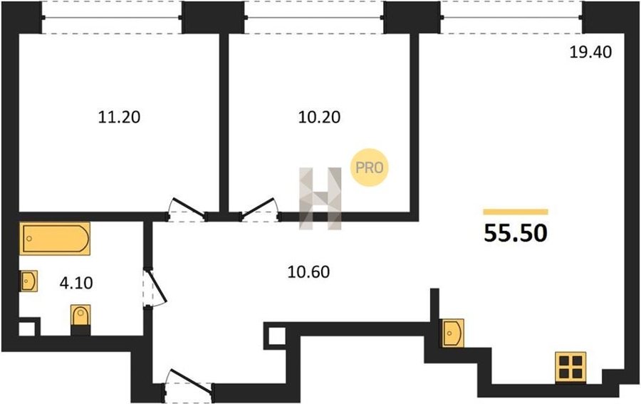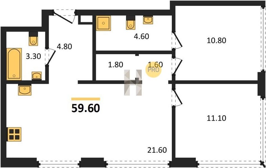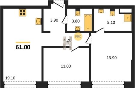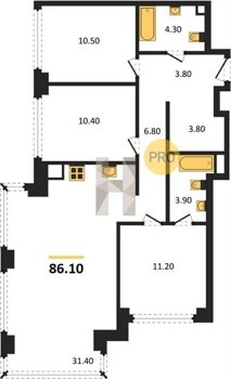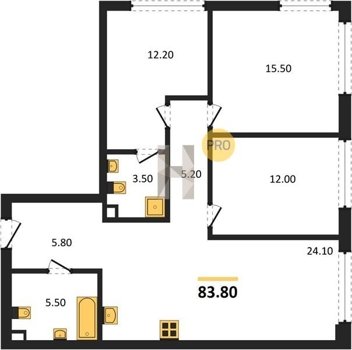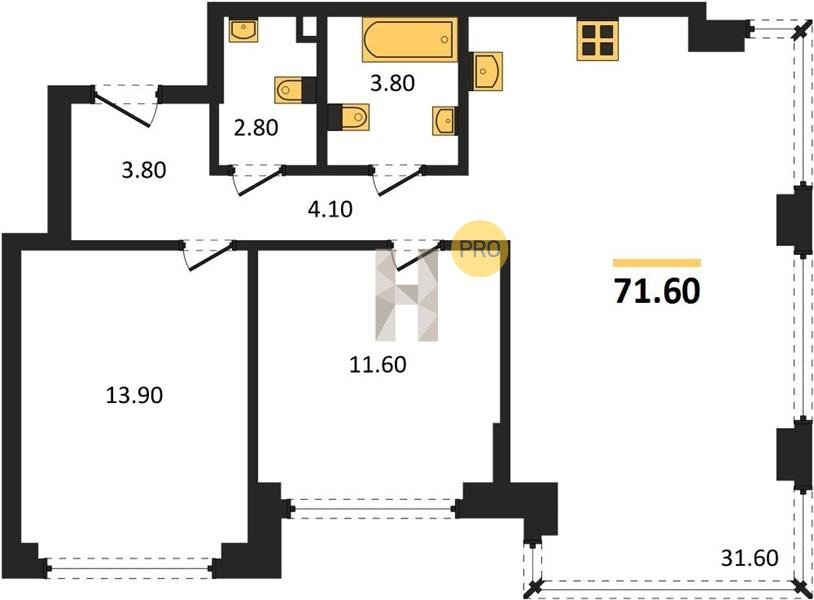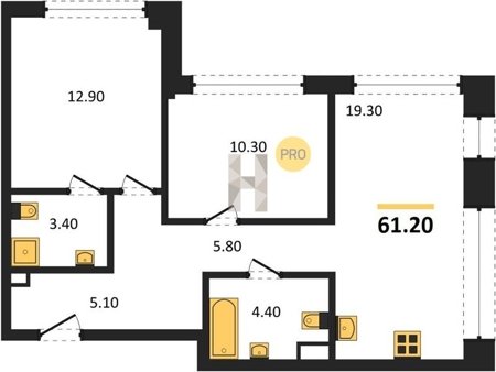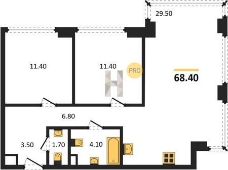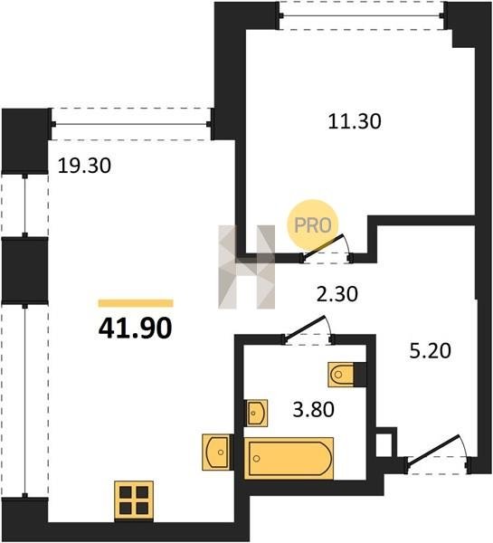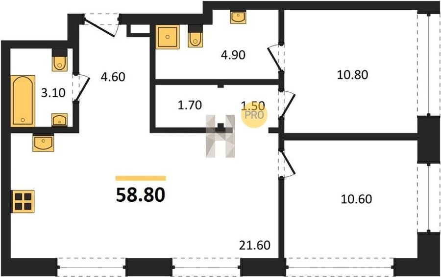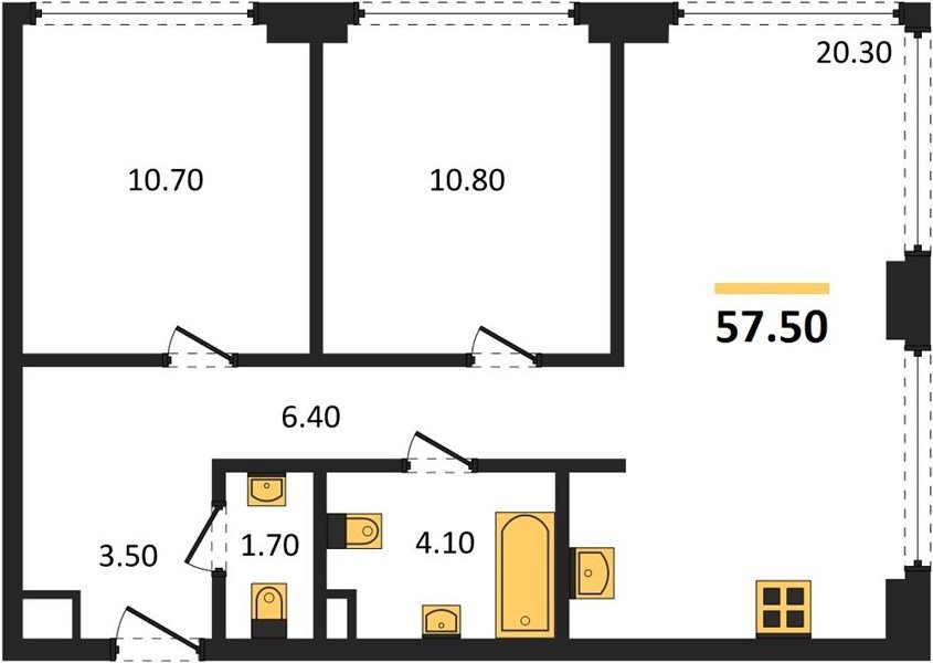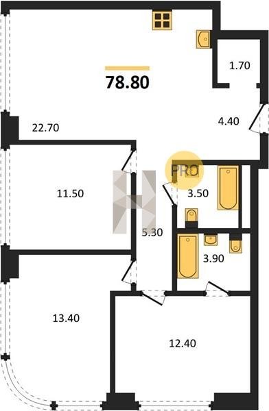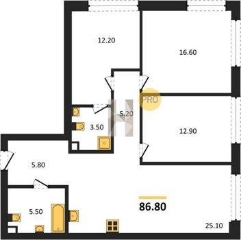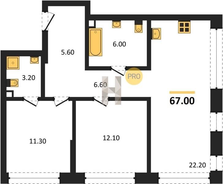 Площадь от 52.5 м2