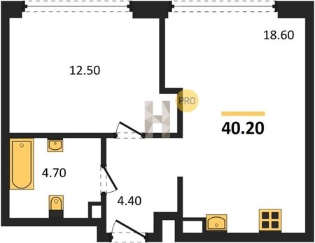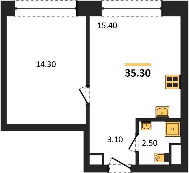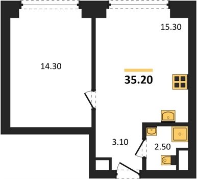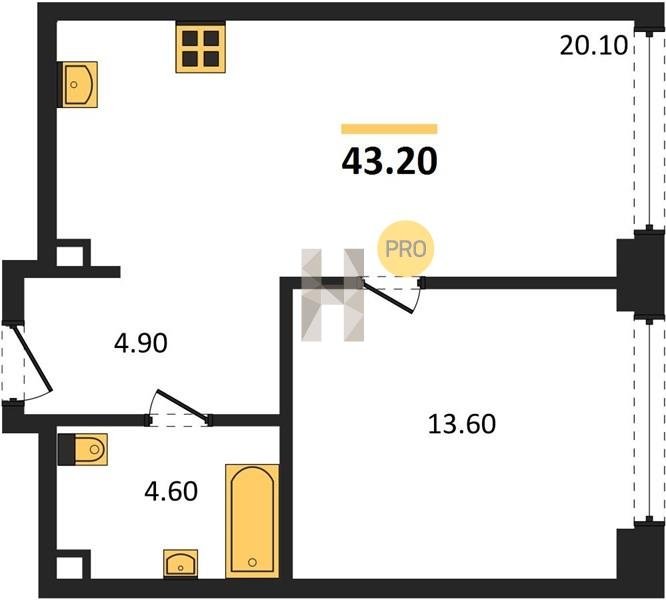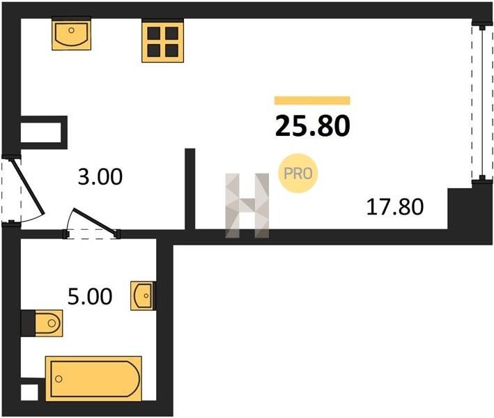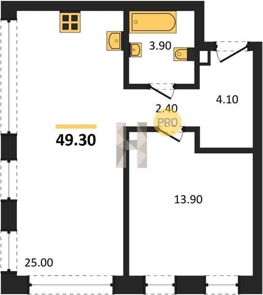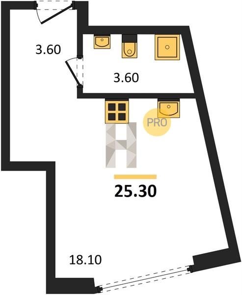Площадь от 25.3 м2