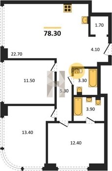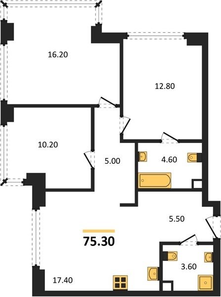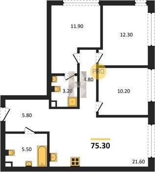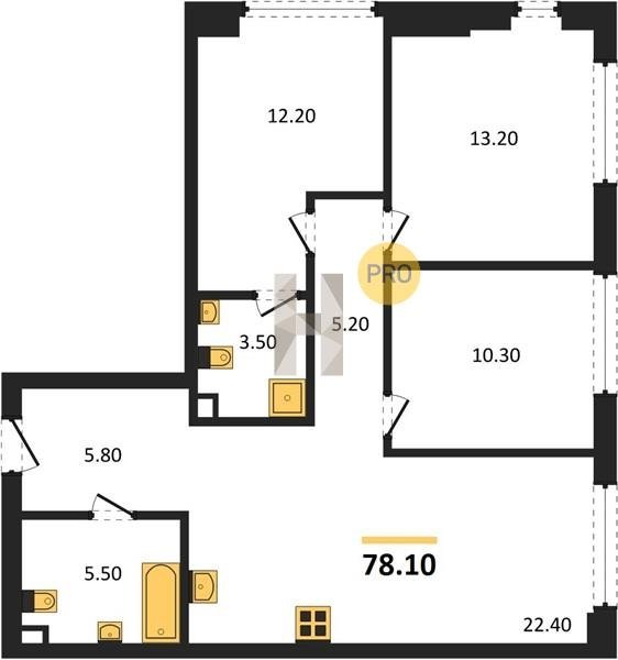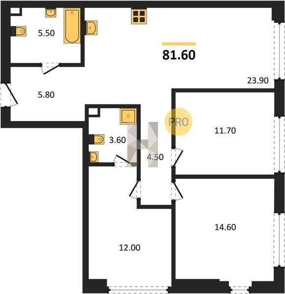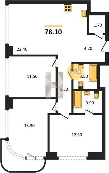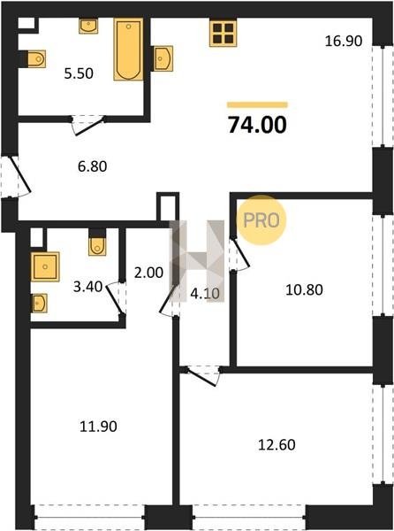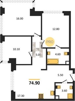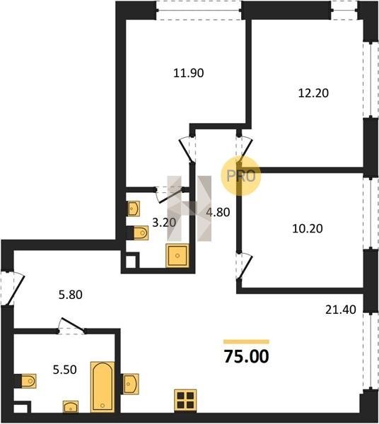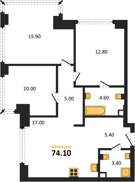 Площадь от 73.9 м2
